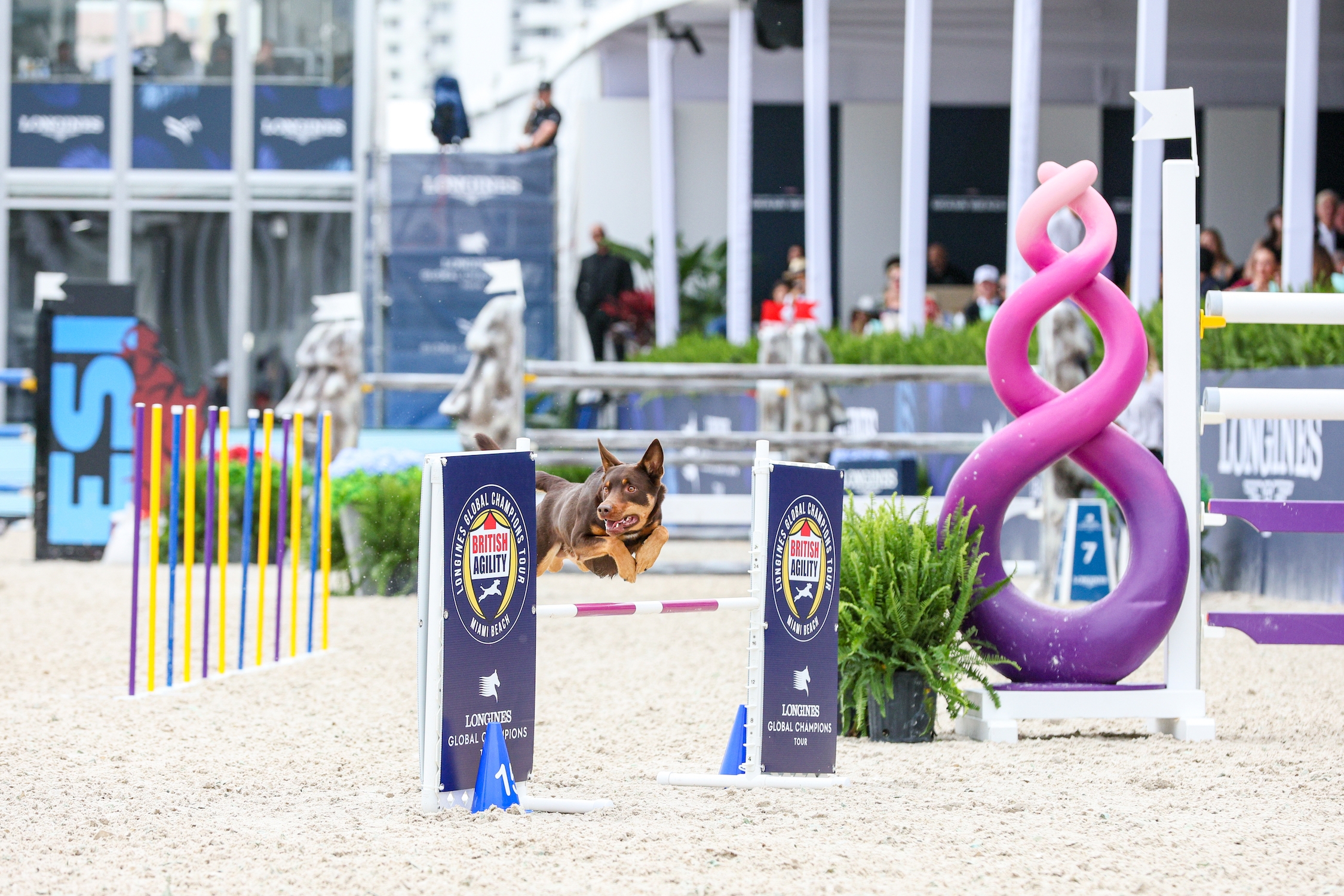 A different kind of jumping action took center stage at the LGCT of Miami Beach between classes as agility dogs took to the arena and dazzled the crowds with their athletic talents.