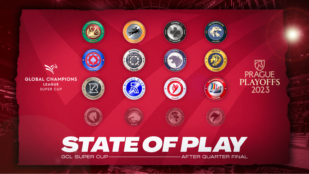 Eight teams survived the dramatic knockout competition to take their place in tomorrow’s semi-final as sadly New York Empire powered by Lugano Diamonds and Rome Gladiators powered by CLIPMYHORSE.TV left the GCL Super Cup battle at this stage. It was also over and out for Mexico Amigos and Cannes Stars who had their dreams dashed on the very first day of the 2023 GC Prague Playoffs.