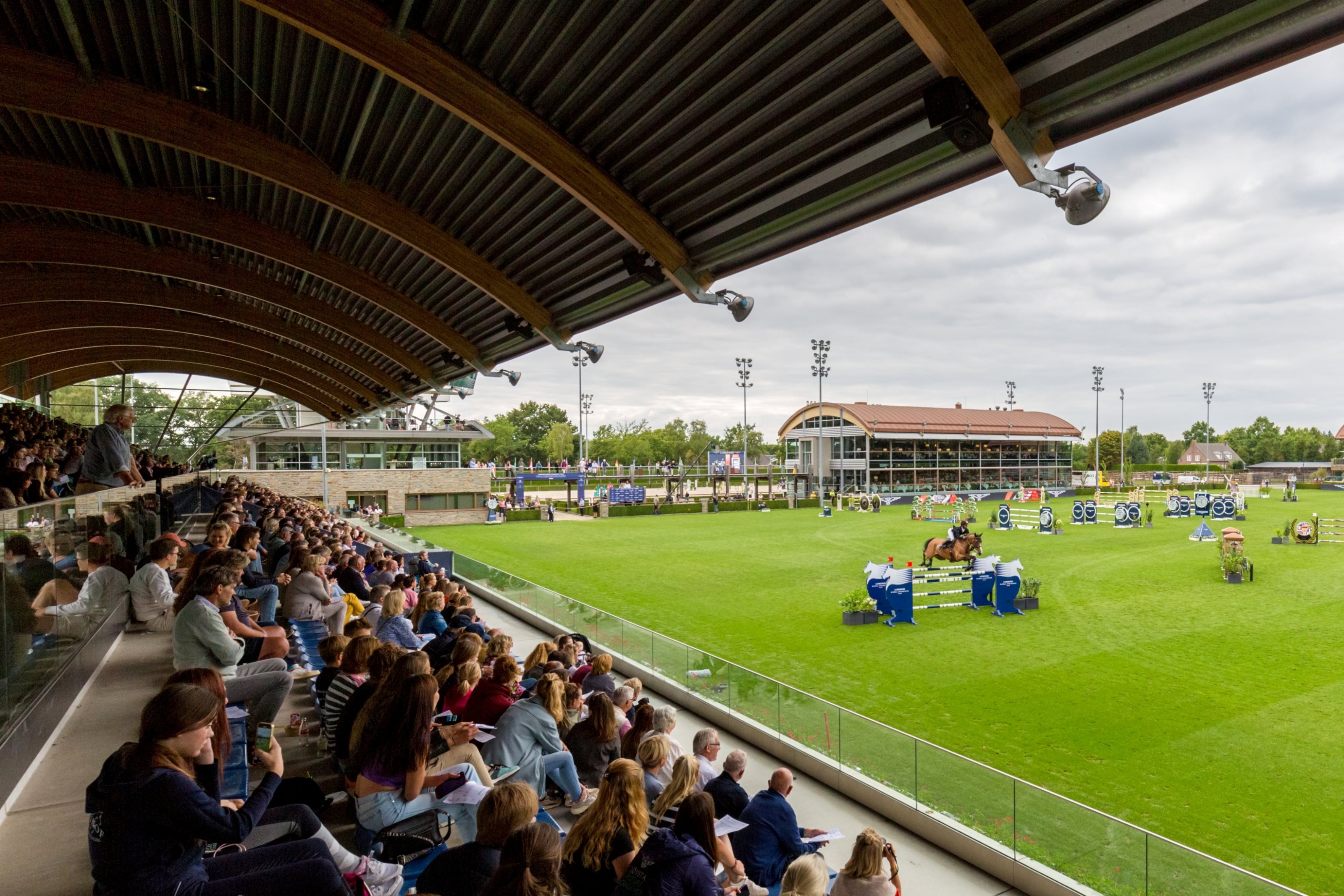 This stunning venue is of world renown and mixes cutting edge design and technology with traditional values, designed with a ‘horse first’ approach. The venue features an exceptional 125m by 85m sweeping grass arena, four further arenas featuring top class footing, canter tracks and lunging arenas, expansive warm up arenas, exceptional wash areas and facilities for grooms to provide top standard care.