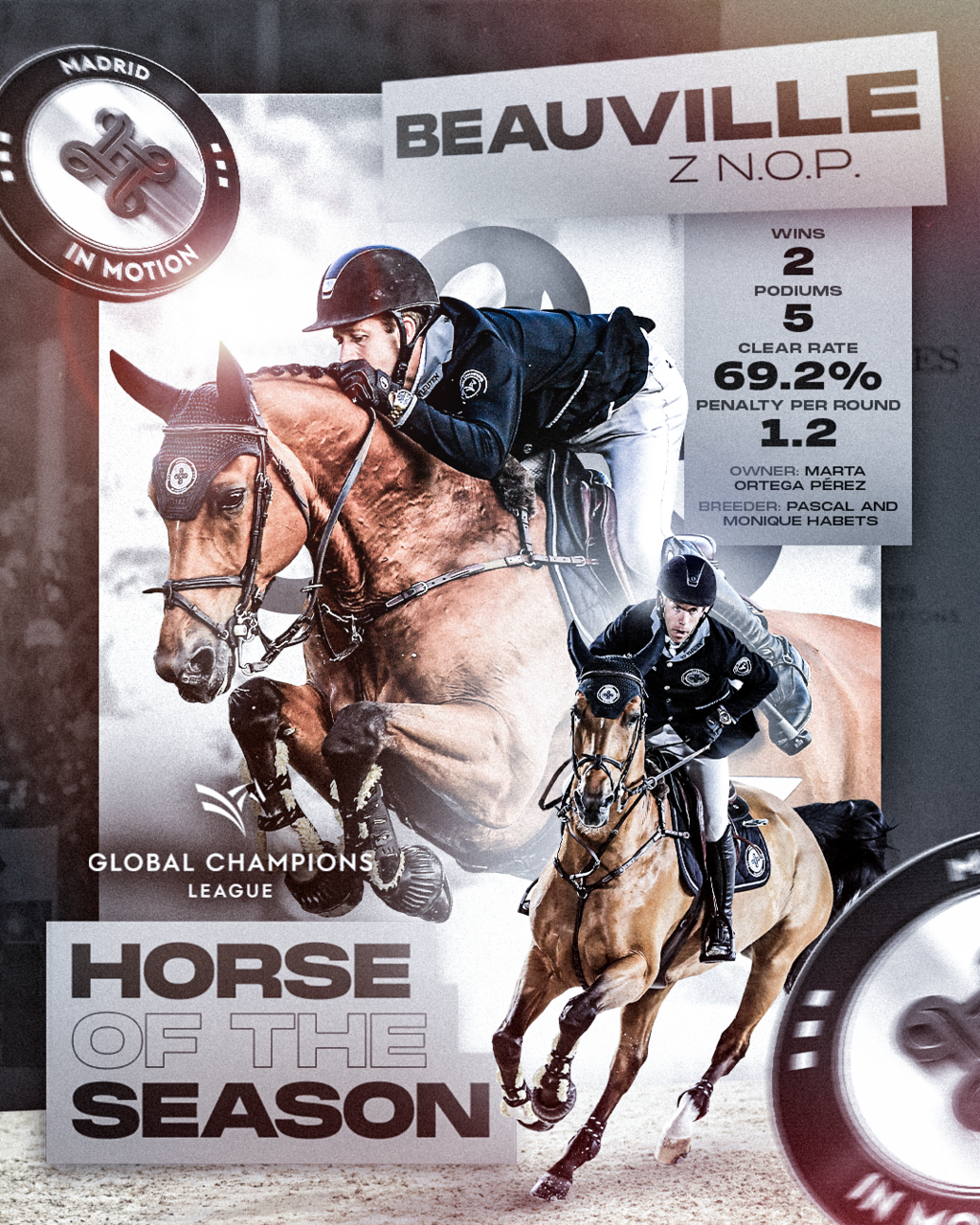 Beauville Z N.O.P contributed two wins to the Madrid In Motion team this year with 5 podiums and a clear rate of 69.2% with just a 1.2 penalty per round average.