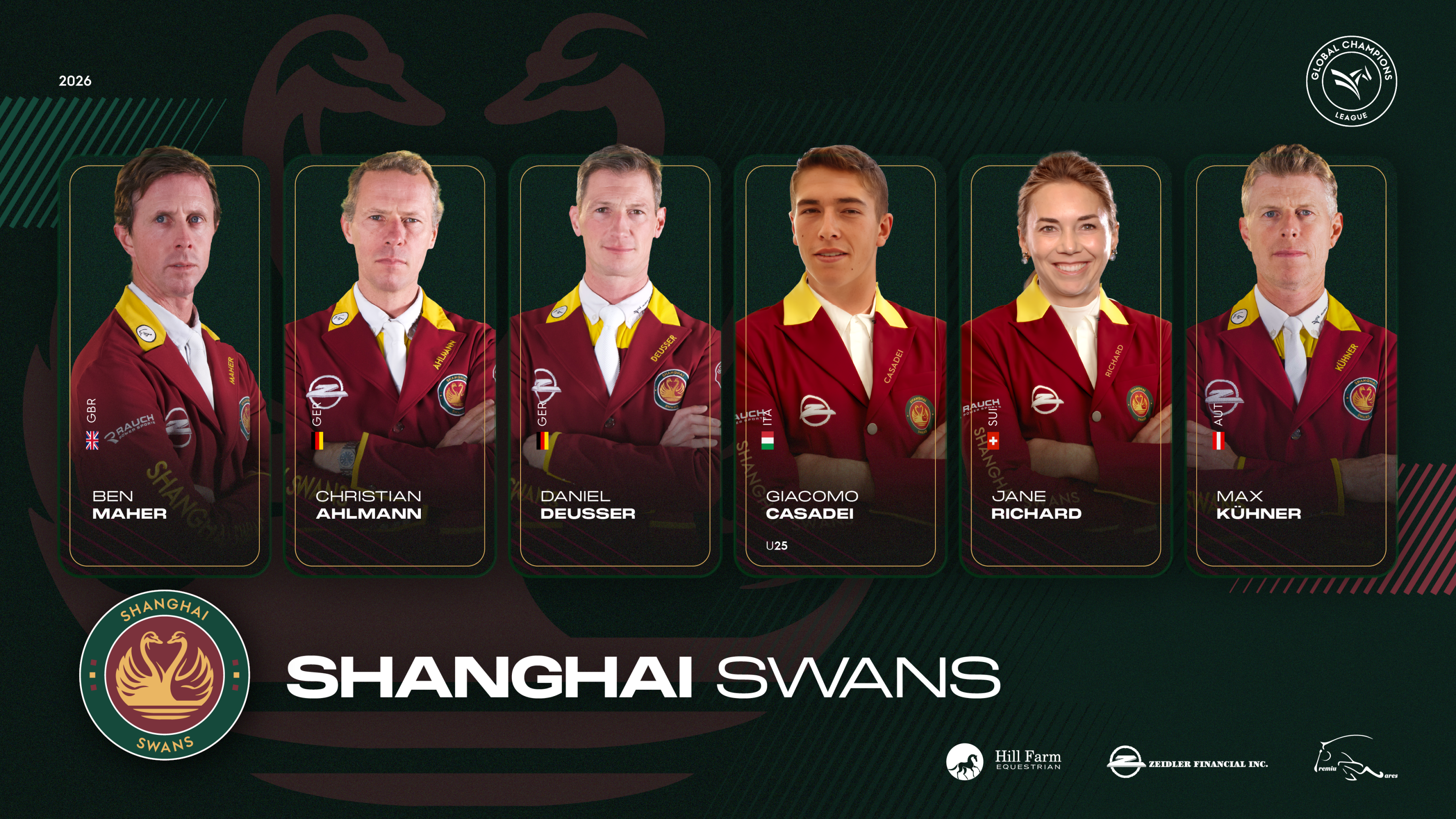 The 2026 season brings together an extraordinary concentration of elite talent. Shanghai Swans arrive stacked with experience, featuring Ben Maher, Daniel Deusser, Christian Ahlmann, Giacomo Casadei, Jane Richard and team manager Max Kühner.