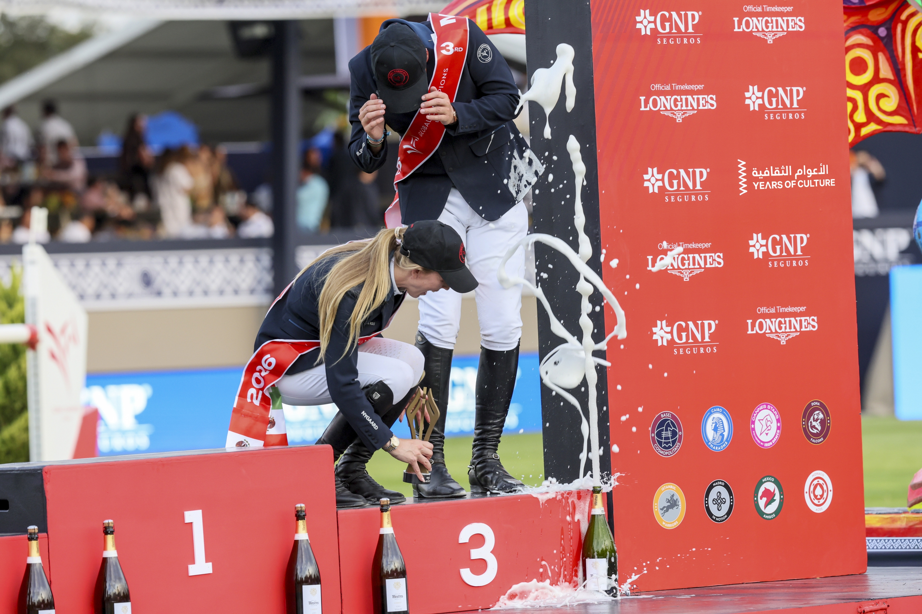 In a finish that underlined the intensity of the new GCL format, St Tropez Pirates secured victory on a total of just four faults, stopping the clock in 147.23 seconds in Round 2. Hot on their heels, Istanbul Warriors powered by Carpe Diem Equestrian Team matched them on four faults but fell just short on time with 148.99 seconds. Rounding out an ultra-competitive podium, Basel Cosmopolitans powered by Les Trois Rois also delivered on four penalties, crossing the line in 149.41 seconds to secure third.